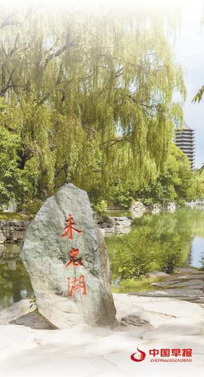 侯仁之题写的北大“未名湖”景石。 |