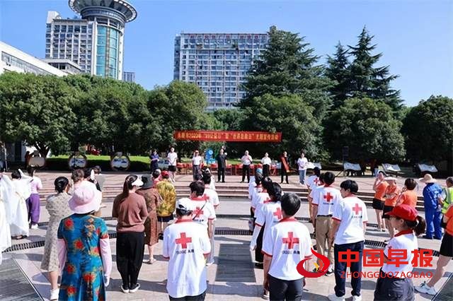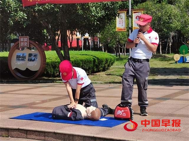 市红十字会的应急救护师资现场为群众进行心肺复苏、气道异物梗阻的急救知识、AED使用等急救技能,向大家讲解在紧急情况下心脏按压、人工呼吸、伤口止血等急救知识和急救方法。帮助群众切实掌握急救技术核心要点,提升应急救护知识和自救互救技能普及水平,营造“人人学急救、急救为人人”浓厚社会范围。
