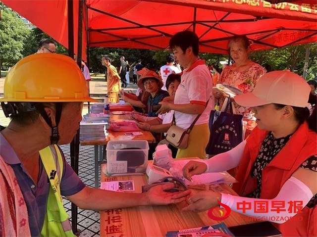 活动现场,志愿者们向过往群众介绍我市红十字会“99公益日”一起捐项目,引导和动员居民参与到“一起捐”活动当中,为实现“人人公益”尽一份力。市民李健康当即拿出手机扫了二维码,捐了2000元。 同时市红十字会工作人员与志愿者们一起,向过往群众发放应急救护知识手册、造血干细胞捐献知识手册、器官捐献及无偿献血知识手册等宣传资料。市红十字会医院(永康医院)医护人员在活动现场进行义诊,免费为过往群众开展测血糖、量血压、健康科普等志愿服务。