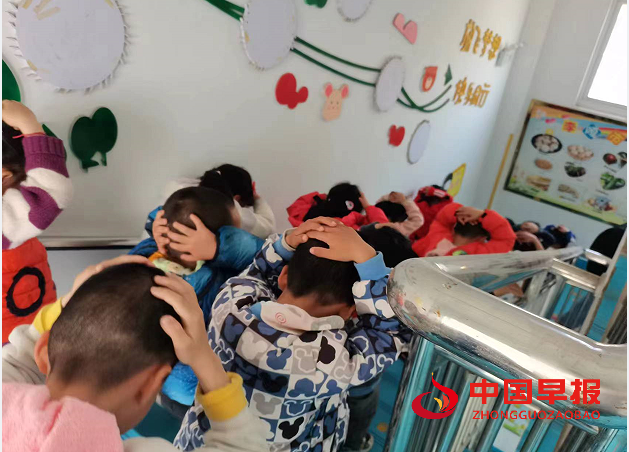 ——湖北沙洋县李市镇中心幼儿园开展防震逃生演练活动