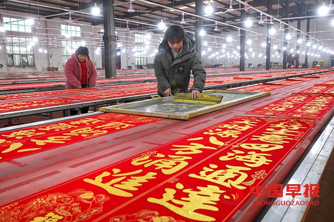新年临近,眼下正是春节对联、“福”字等喜气用品的产销高峰期,尉氏县大桥乡大槐树壮丽工艺品作坊喜庆用品生产车间各条流水线开足马力,加班加点满负荷生产,把产品供应到国内外市场。