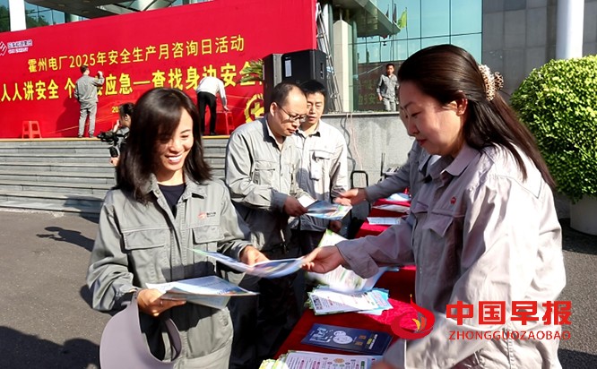 中国早报 山西讯(记者 赵玉虎)6月16日,山西霍州电厂为积极响应集团“安全生产月”活动的号召,丰富安全月活动内容,充分提升员工安全意识,深化全员安全教育培训工作,全面落实安全生产岗位责任制,紧扣“人人讲安全,个个会应急——查找身边安全隐患”安全生产月活动主题要求,组织开展了安全生产宣传咨询日活动。
