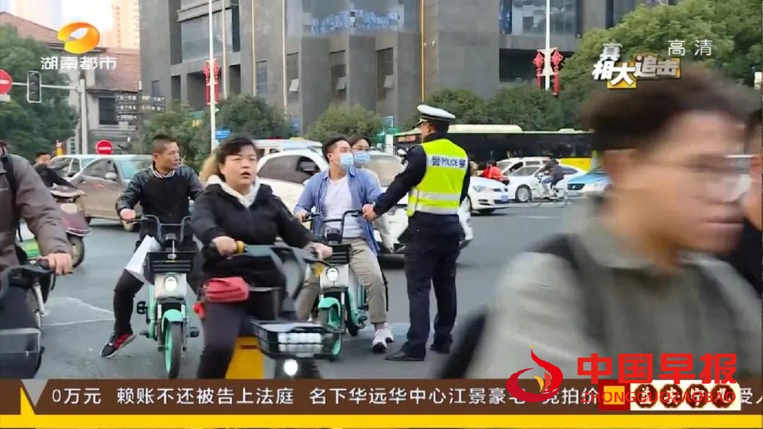 记者跟随长沙芙蓉交警二中队执法时,短短10分钟就查处了6起电动共享车违规载人的行为。