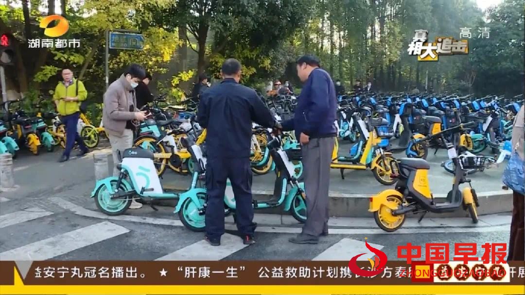 长沙芙蓉交警二中队 民警周浪:我们大队跟公司一直都是有联系的,会把现在存在的问题,数据较多的统计起来,哪里有乱停乱放的都会及时通知企业来处理,双方一直在探讨如何管理好共享电动车。