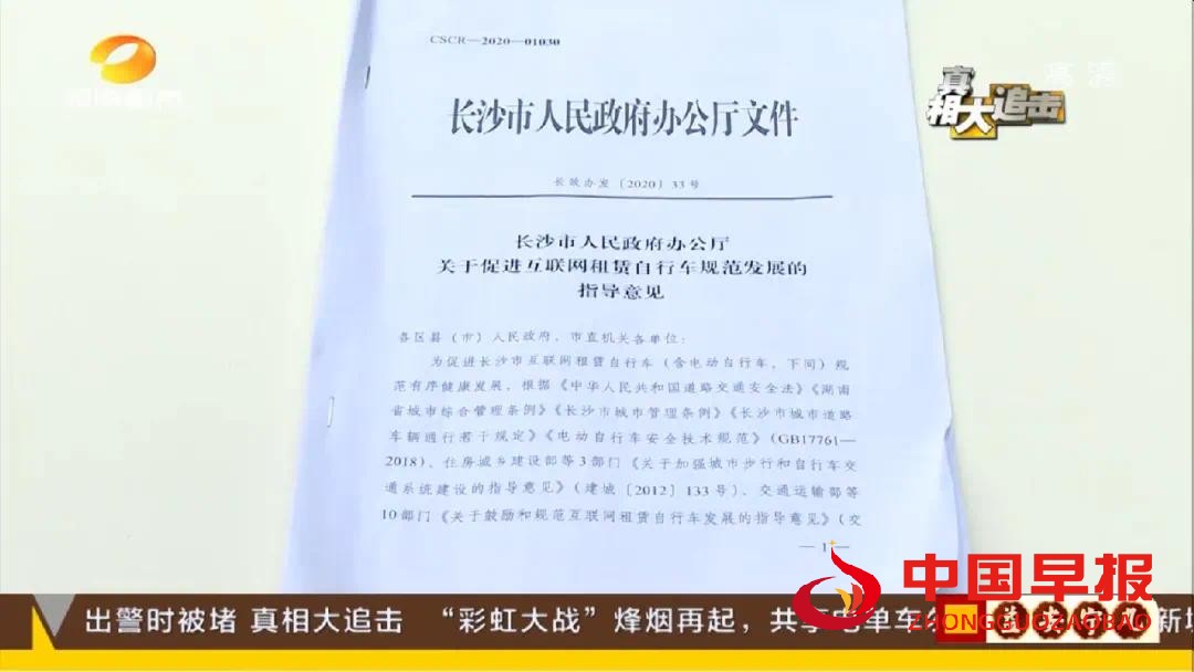 市城市管理和综合执法局 工作人员:现在我们已经做了立项,在今年年底做一个共享平台,要求所有进入长沙市共享单车企业,把这个东西接入我们的平台,进行一个动态监管,就是防范于未然,及时发现及时处理。