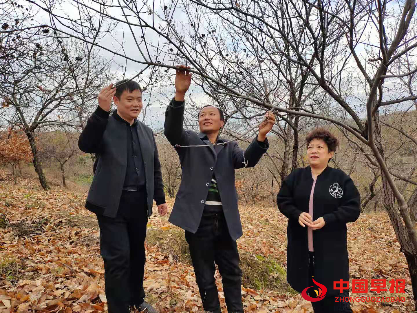 2016年,靳立华被纳入精准扶贫贫困户,享受了易地搬迁政策,住上了150平米的小洋楼,他说:“这房子买的话怕是得四十万吧。现在不光住得好,孩子上学也方便了,以前下雨得穿高腰胶鞋,现在出门脚不沾泥,住在社区,娃们自助机走几步就到学校了。”上学也不用操心,学费全免,小学教育补贴1000,初中1250。父亲喷门癌住了五次院,花了五万多,报销之后只花四千多。镇村的帮扶、社会爱心人士的捐助、民政的救助,衣物、电磁炉、无障碍设施,残疾人补贴,老有所养、学有所助、病有所医,可以说解决了靳立华的一切后顾之忧。日子安稳了,靳立华有精力管理自己的栗子树了。我想弄好但是不知道咋弄。就在这时候,镇林站请来农技师对他们进行了培训,村里也多次请技术员来现场指导,讲解如何精细化管理,如何防虫,四级修剪等。还建立了一个微信群,有什么问题都可以随时在群里咨询。勤劳的他挖坑蓄水,自己修剪果树、除虫。他的板栗格外的好,帮扶人帮他销了一千斤。远销广州、上海,水果市场争着要。贫困户都可以去自己的一百亩坡地里免费拾栗子吃。今年的纯收入达一万七八,是原来的六七倍。此外他又栽了一百六七十棵大樱桃。
