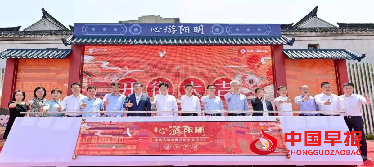 中国早报浙江余姚讯(记者 常红伟 袁孝冲)姚江潺潺,古韵悠悠。5月1日上午,值此全国人民欢度五一劳动佳节之际,以“心游阳明”为题名的府前路历史文化街区开街仪式在余姚阳明古镇盛大举行。余姚市政府相关部门领导、合作单位和部分客商及现场观众出席参与了此次活动,共同见证了开街启幕盛典。