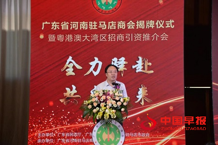 中国早报河南讯(记者 常红伟 通讯员 李俊锋 胡小末)5月16日,正是南粤大地,木棉树挂果正当时;也是豫中南部,紫薇花含苞待放时。当日下午4时许,全力驿赴,共启未来,广东省河南驻马店商会揭牌仪式暨粤港澳大湾区招商引资推介会在广州白云国际会议中心3号楼珠江厅隆重举行。