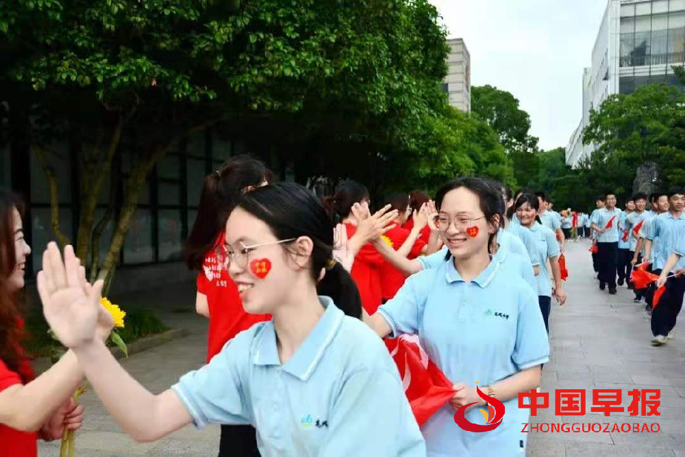 中国早报浙江余姚讯(记者 常红伟 袁孝冲)胸怀冲天志,爱拼才能赢。6月9日上午7时,余姚市高风中学举行“扬帆起航,逐梦前行” 2021届中考壮行仪式,500多名初三学子在家长、老师和学弟学妹的助威呐喊声中,雄赳赳、气昂昂地通过由任课老师组建的击掌壮威列队,有序步入广场。
