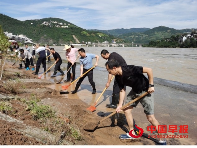 中国早报网陕西讯:8月26日以来,连日强降雨导致老城汉江河堤淤泥、垃圾等杂物堆满了人行道,为了方便老城群众出行、锻炼,旬阳市交通运输局党组迅速组织系统各支部党员志愿者服务队50余人前往老城江边人行道清理淤泥、积水、白色垃圾。